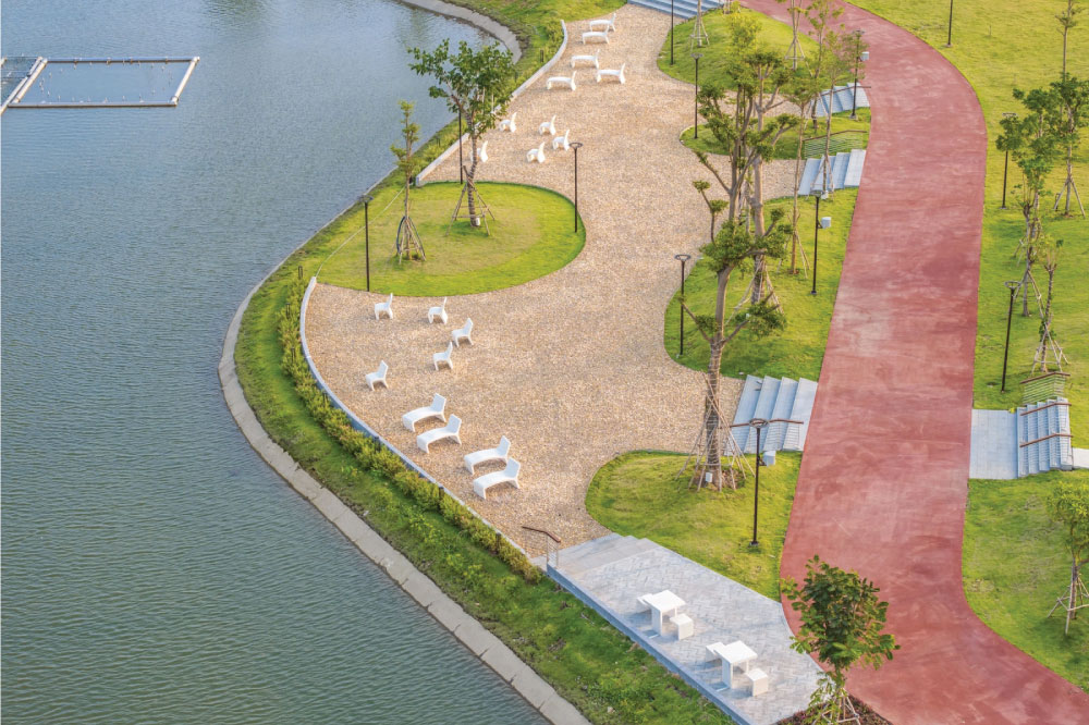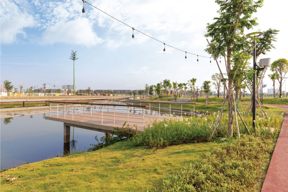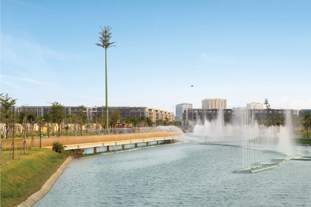 | Tiện Ích Nổi Bật | 25.000m² công viên, 70.000m² mặt nước, 3 công viên nội khu (5.586m²), 1.5ha trường quốc tế, hồ bơi, gym, lounge, đường dạo bộ ven sông. |